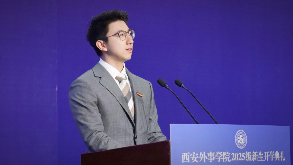典礼上举行了庄重的新生校徽佩戴仪式。当闪亮的校徽别于胸前,2025级新生将从此共担外事人的使命,共赴外事人的荣光,努力成为勇于进取、自强不息的新时代外事人。