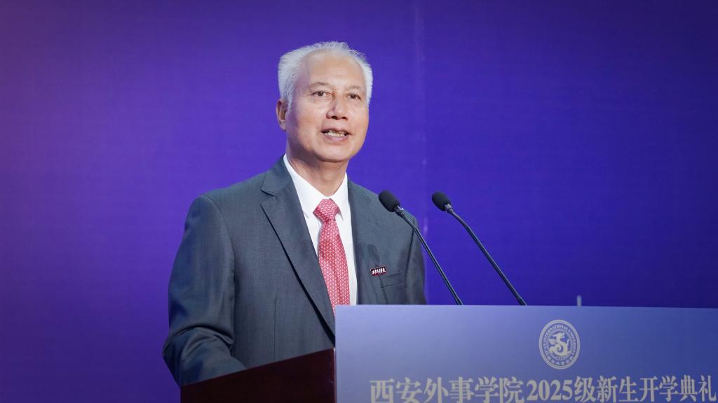 西安外事学院理事长、校长黄藤,党委书记雷西合,理事长助理、校长助理黄昶力,国际事务负责人戴奇志等学校领导出席典礼。监事会、工会主席,各学院院长,各工作部部长,各业务办公室主任,各直属部门负责人,教职工代表,校友代表,与2025级新生齐聚一堂,共同见证学子们人生新征程的开启。